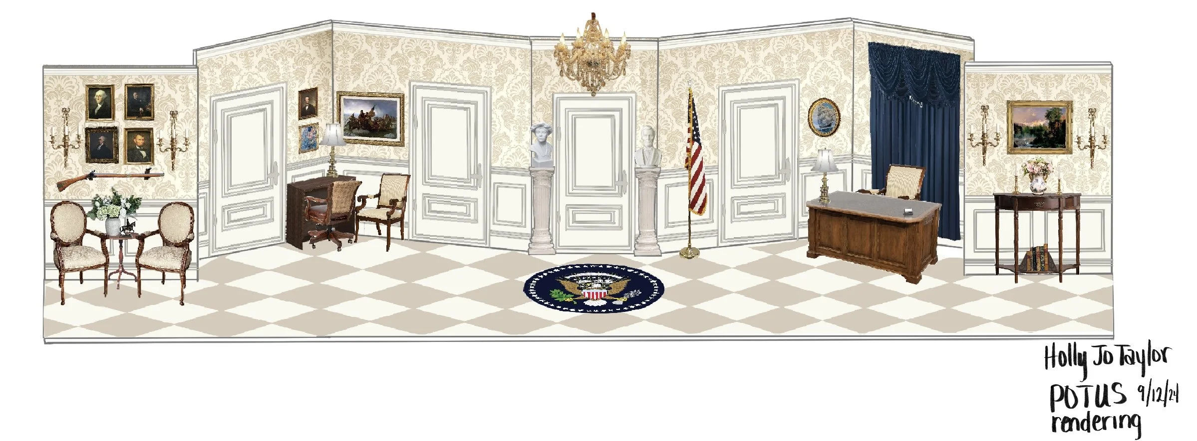 POTUS by Selina FillingerPensacola Little Theater, Pensacola, FLDirected by Barbara JacobsScenic Design by Holly Jo TaylorCostumes by Gavin ParmleyLighting by Corey TuckerSound Design by Philip Posey2024