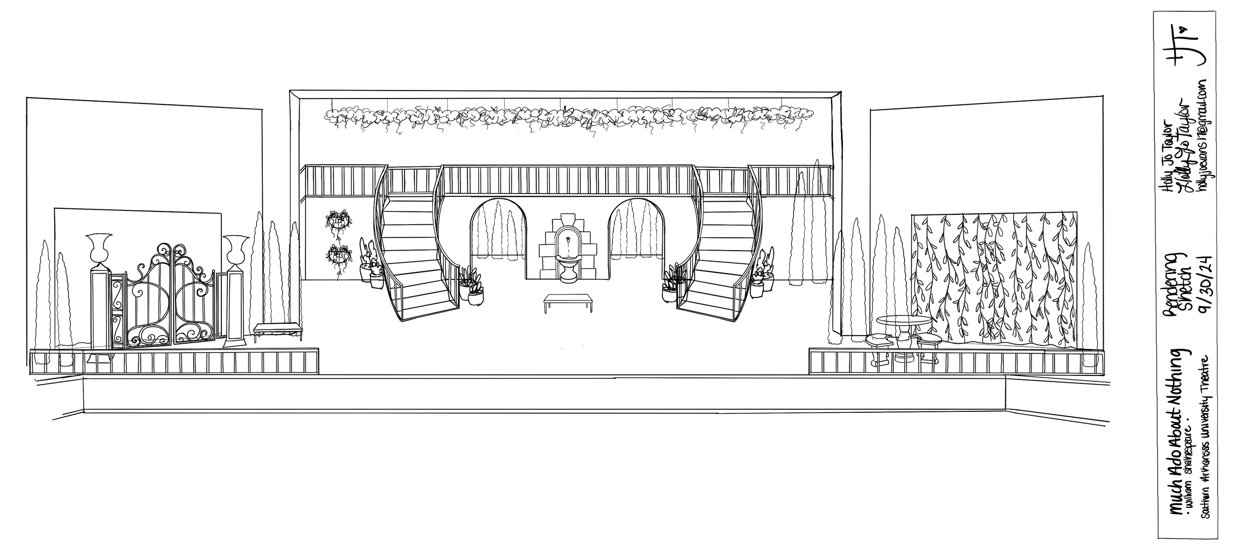 Much Ado About Nothing by William ShakespeareSouthern Arkansas University Directed by Joann KaarScenic Design by Holly Jo TaylorScenic Painting by Pan CreedCostumes by Danielle Hawkins2024